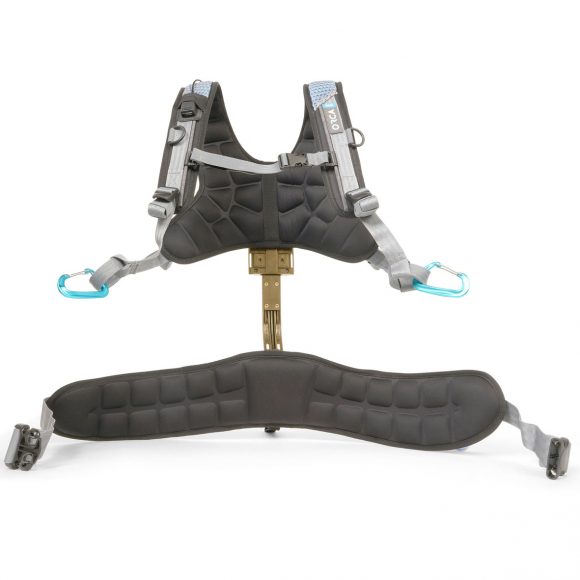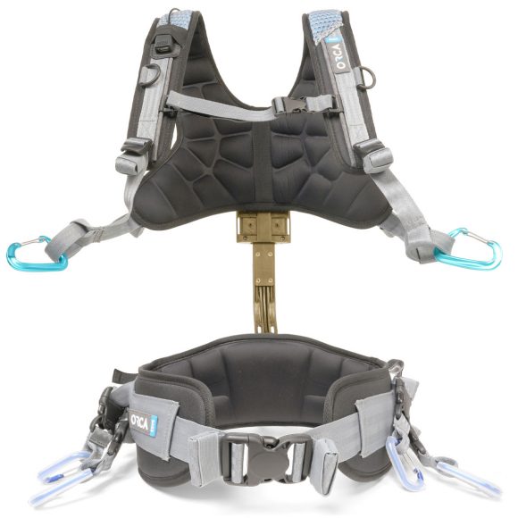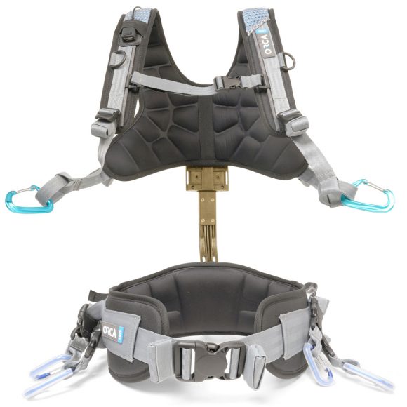 The Orca OR-445 (Spinal Support System) Sound Bag Harness is a patented design intended to protect and support audio operators' backs