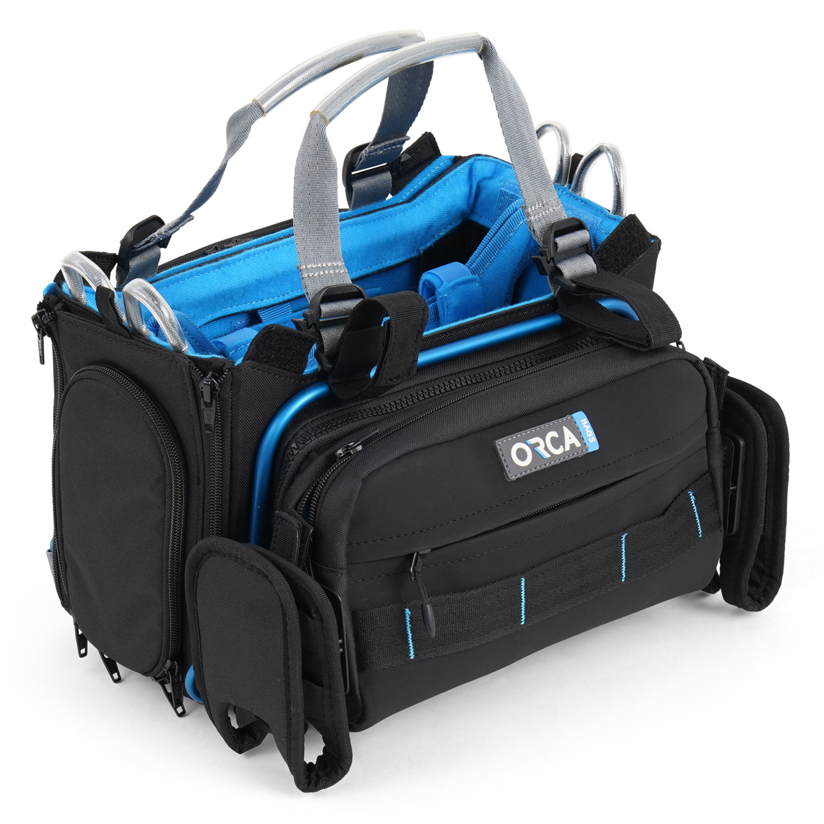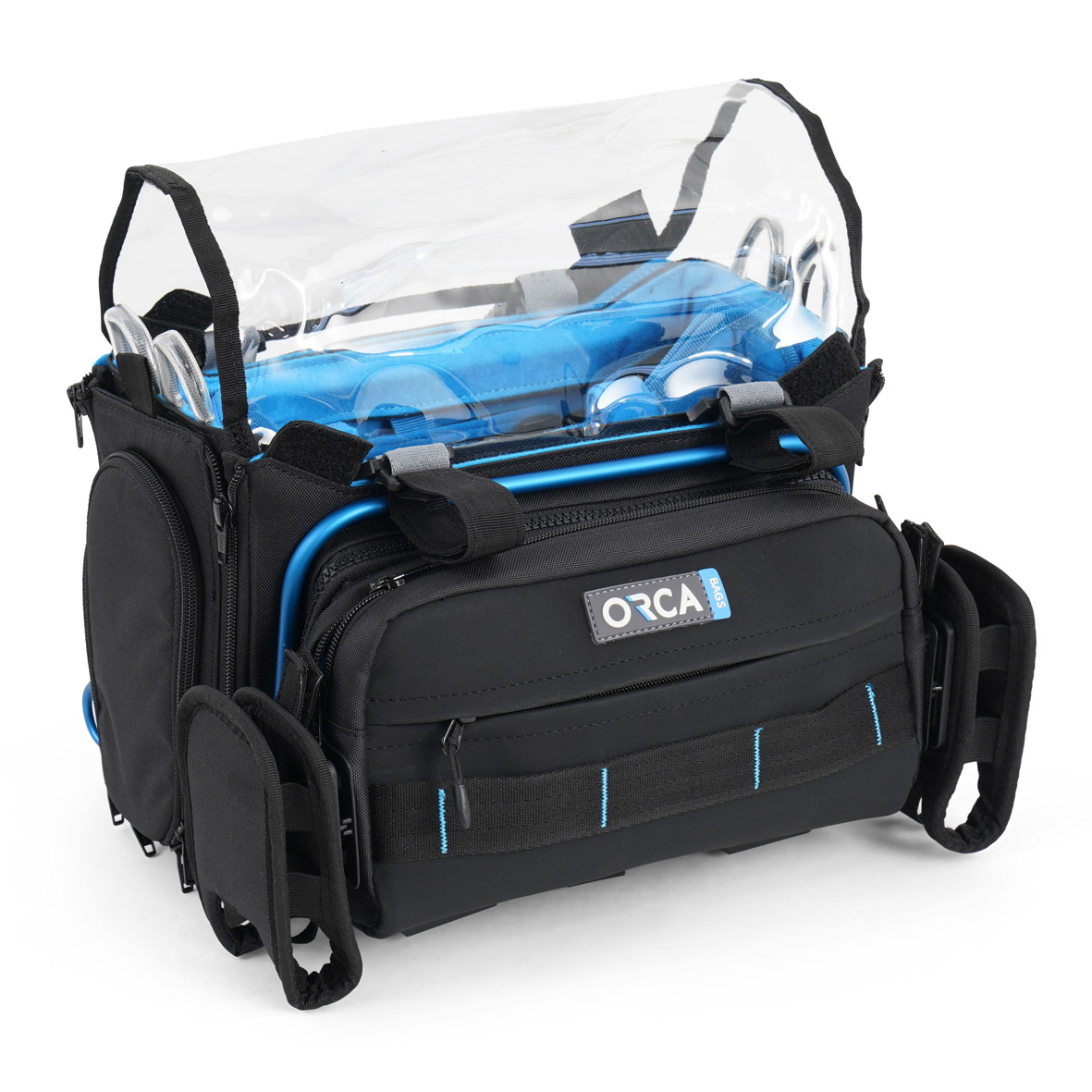 The Orca OR-30 Audio Mixer Bag has an easily detachable front panel, which can be used as a stand-alone pouch for accessory storage. The OR-30 offers optional covers in three different colors: black, blue, and gray.* The OR-30 is recommended for the Zaxcom Max; Sound Devices 633, 833, and 888; and similarly sized mixers.